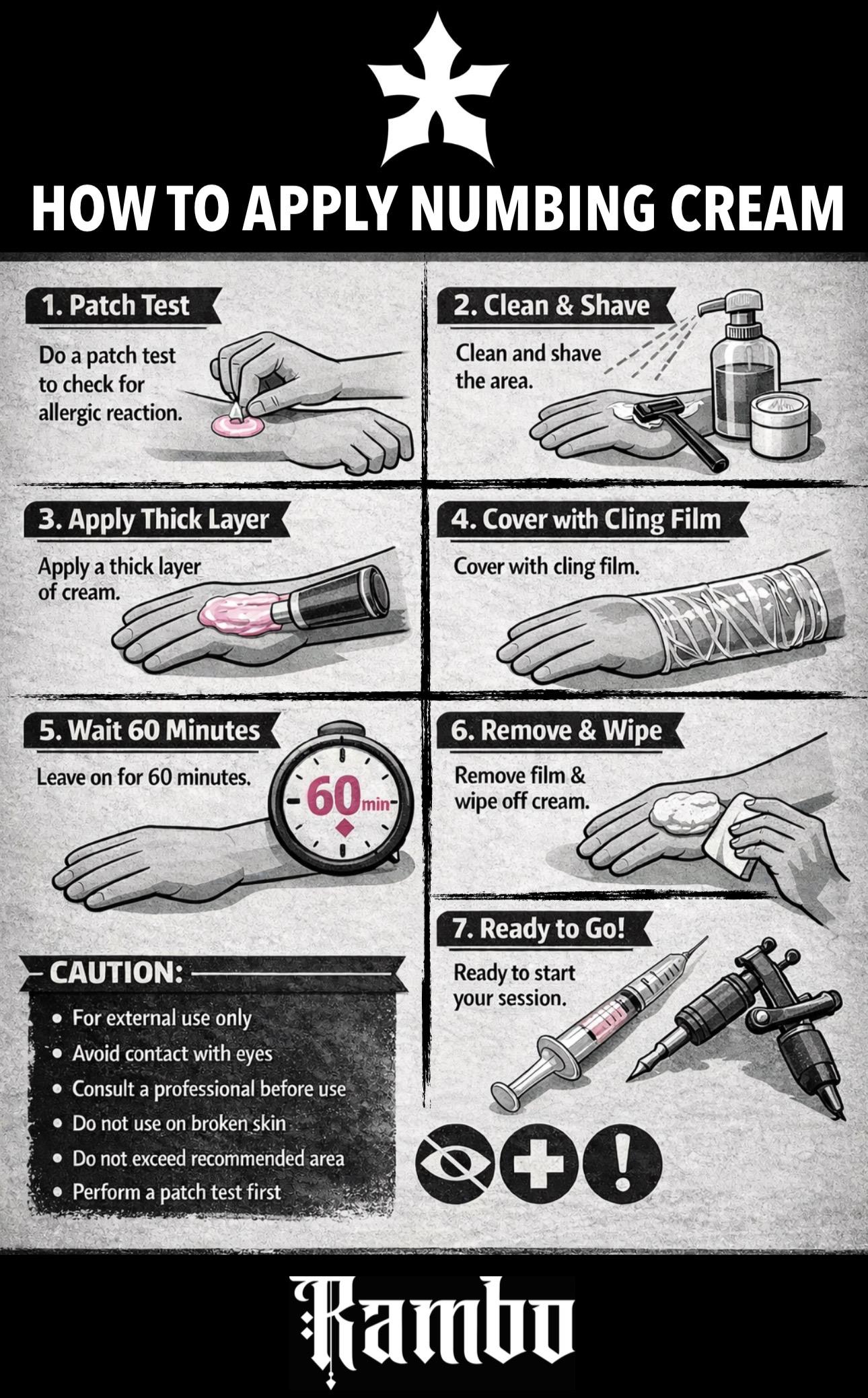 Follow these simple steps to achieve maximum numbing results. For best performance. Apply RAMBO correctly 30-60 minutes before your procedure.
