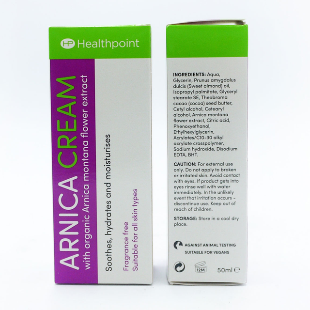 Experience a natural and effective solution for pain and inflammation with Health Point Arnica Cream 50ml. Extracted from organic Arnica Montana plants, this world-renowned cream provides immediate relief for sore muscles, arthritis, sprains, and bruises. Its soothing properties also rejuvenate the skin, enhancing its natural healing process. Free from harsh chemicals and perfectly suitable for all skin types. Improve your physical wellbeing and skin health with the unparalleled benefits of Healthpoint Arnica Cream 50ml. Indulge in this comforting healing experience and uplift your lifestyle. A perfect addition to your skincare and health regime.